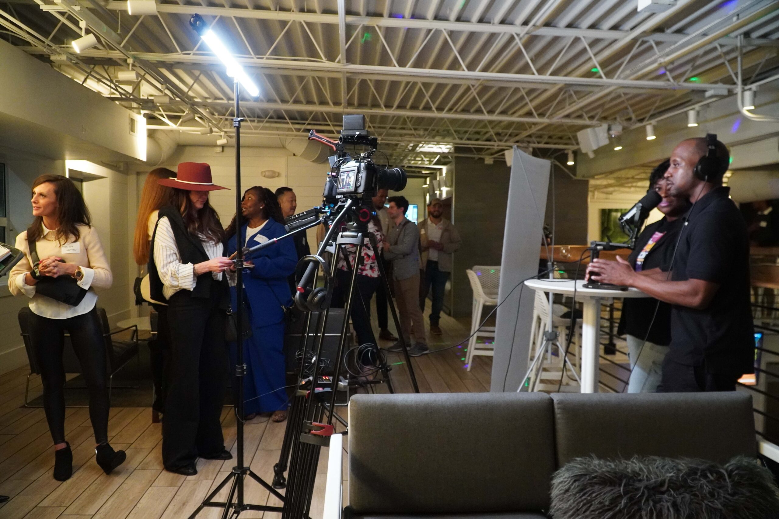 With the video podcast booth, we at Podcast Titans, can help with the entire process. You personalize everything around the setup and we’ll make sure the technical stuff is done. A technician will be on-site at all times to make sure everything runs smooth.